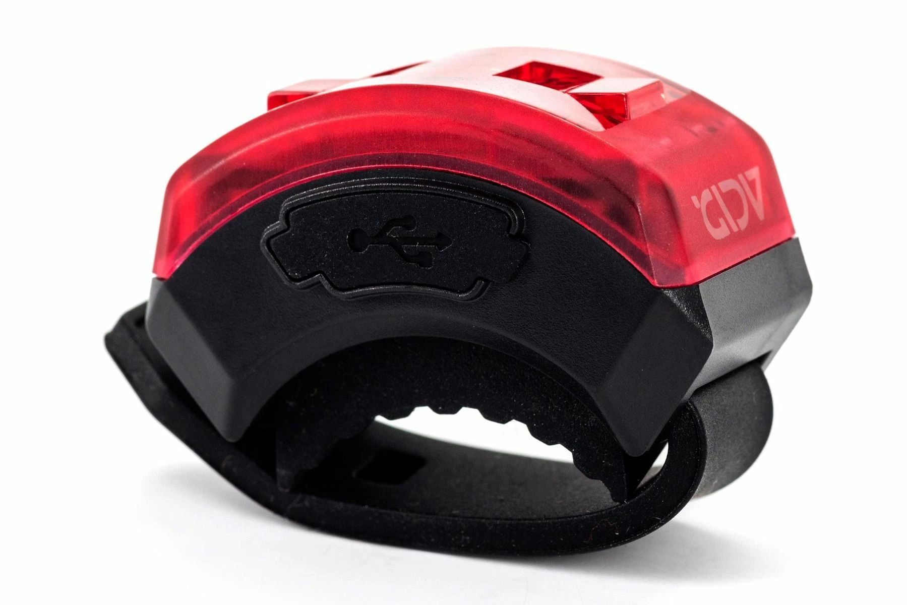 - LED-Rücklicht; StVZO zugelassen; integrierter Lithium-Polymer-Akku; 2-stufiger Batterieindikator; spritzwassergeschützt; Silikonbandbefestigung; inkl. Micro-USB-Ladekabel
