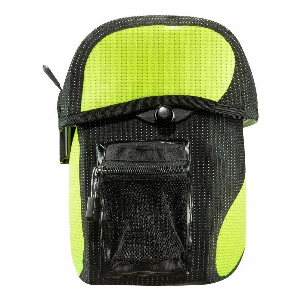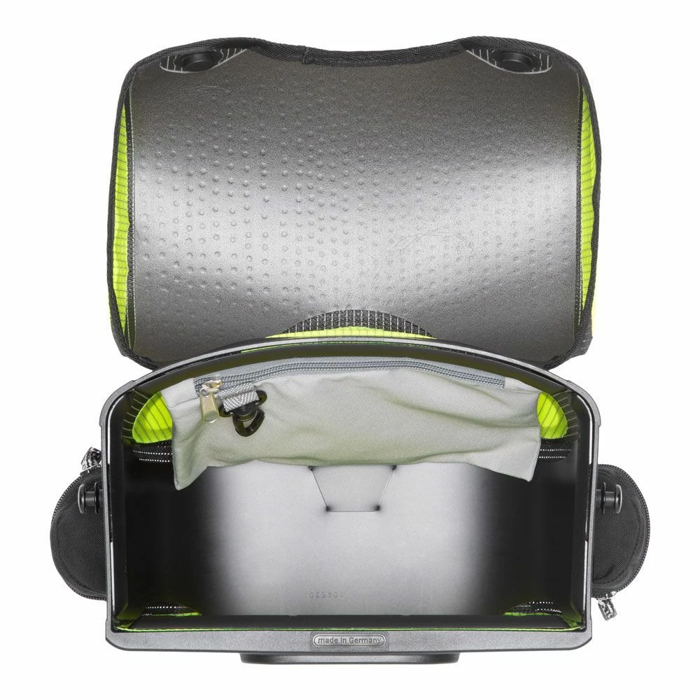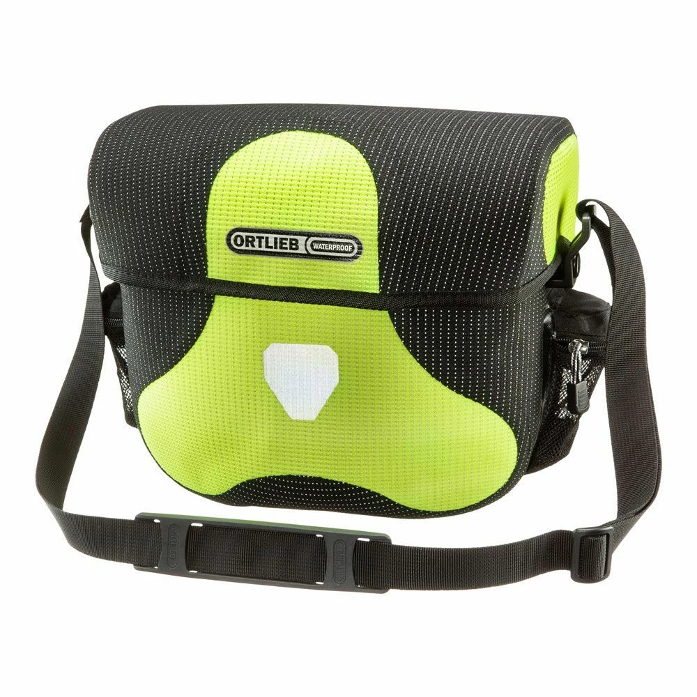 High Visibility heißt bei ORTLIEB: Radfahren mit einem Höchstmaß an Sicherheit. Das wasserdichte PU-beschichtete Cordura-Gewebe in Neongelb ist komplett mit einem leuchtstarken Reflexgarn durchzogen, ebenso der schwarze Gewebeanteil. Im Scheinwerferlicht wird die gesamte Tasche zu einem unübersehbaren Reflektor.