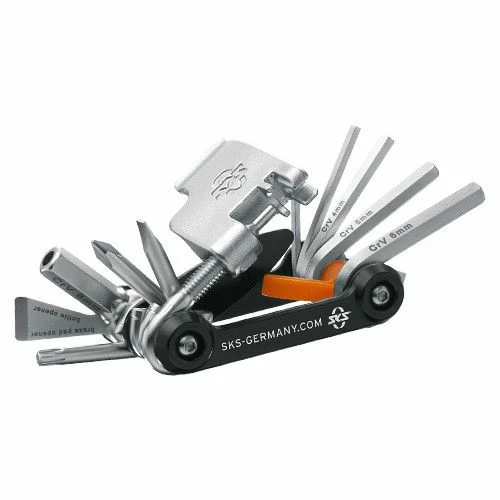 Die 18 Funktionen helfen bei fast allen Defekten weiter, es ist sogar ein integriertes Fach für den Kettenniet vorhanden. Leicht verstaut in der mitgelieferten Neoprentasche, ist man unterwegs für alle Eventualitäten gewappnet.
