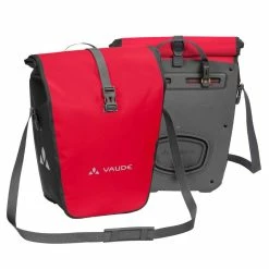 Auf in die große, weite Welt! Die zwei wasserdichten Hinterradtaschen werden aus robustem, PVC-freiem Planenmaterial klimaneutral am deutschen VAUDE-Standort in der Nähe des Bodensees hergestellt und würden gerne auf große Reisen gehen. Sie lassen sich durch den Wickelverschluss auf individuelle Größen bringen und absolut dicht verschließen. Für Übersichtlichkeit sorgt eine einfache Innentasche. Die Radtaschen werden mit dem QMR 2.0-System und stabiler Rückenplatte rechts und links am hinteren Gepäckträger befestigt, sind über einfach bedienbare Handrädchen justierbar und lassen sich schnell und einfach abnehmen. Mit einem Fahrradschloss kann das Set direkt am QMR-Haken verriegelt werden. Mit reflektierenden Elementen. Lieferumfang: zwei Taschen (Paar). Das Gesamtvolumen beider Taschen beträgt 48 Liter. Kann durch diese praktischen Zubehör-Taschen ergänzt werden: Toolbag Back, Sortyour Back, Addita Bag.